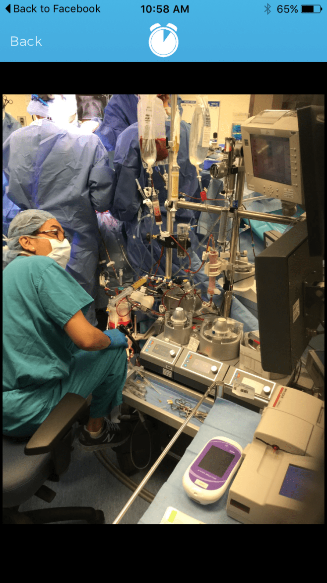 She getting put on the heart lung bypass machine. She is going great and Dr Manning is hard at work.