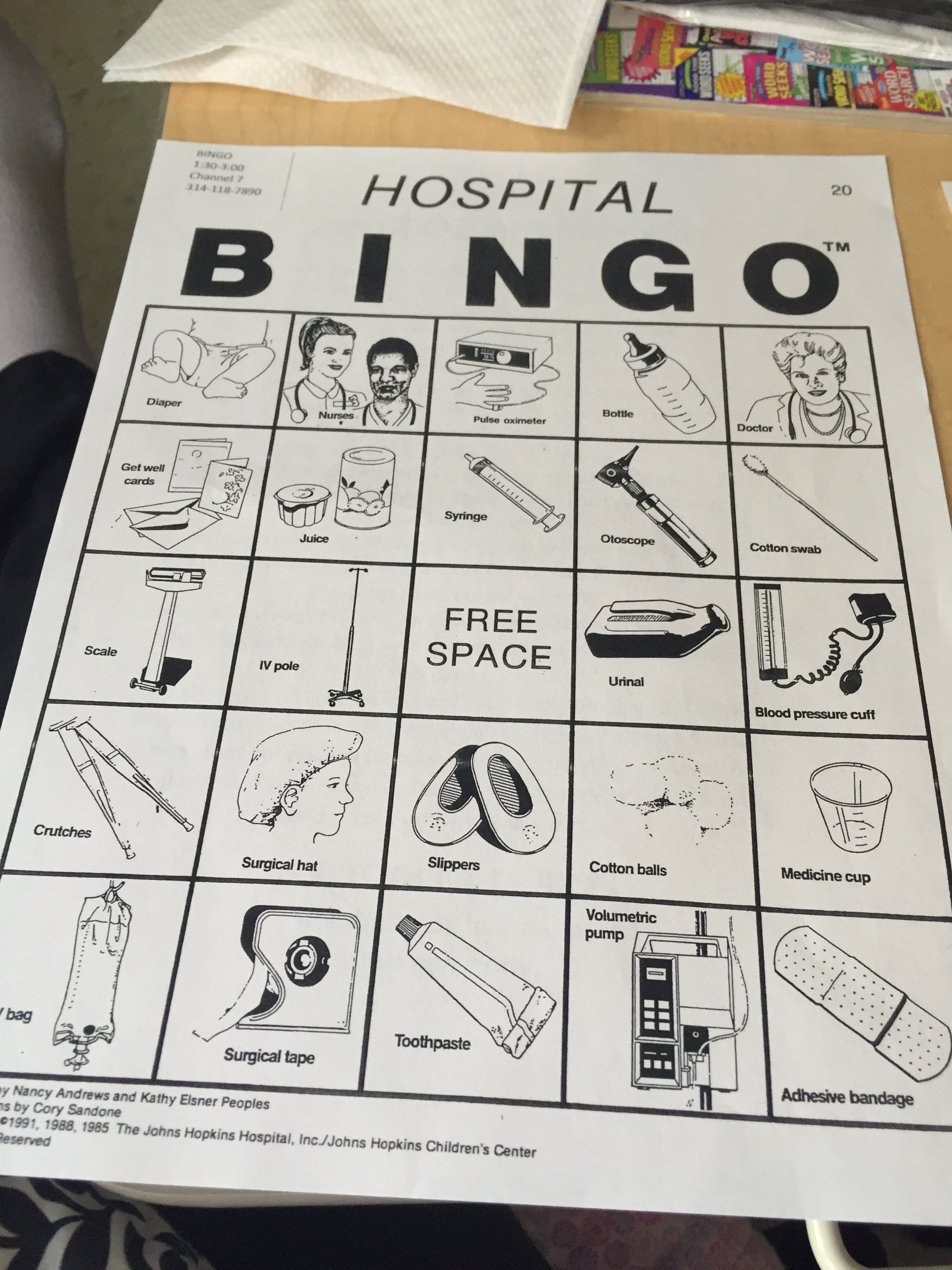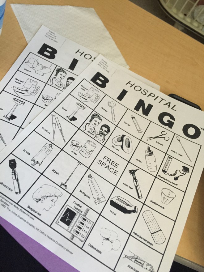 The cards have hospital items on there and then they did a definition of the items. My favorite was the diaper the definition was this.