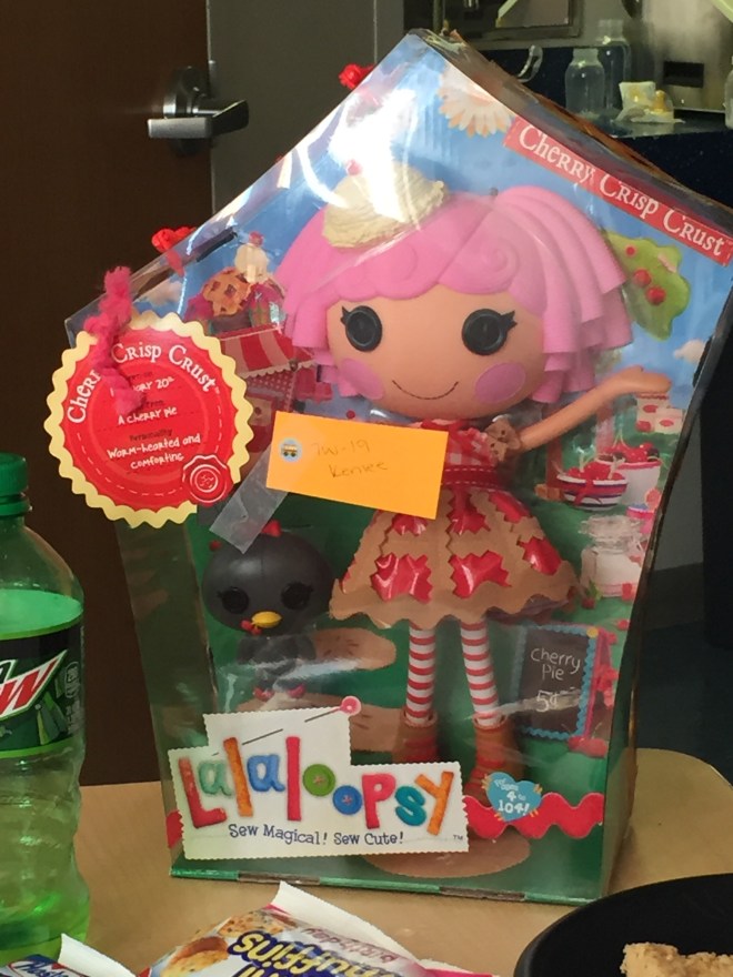 We won!! Kenlee picked out a Lalaoopsy doll. Darth Vader delivered it to the room.