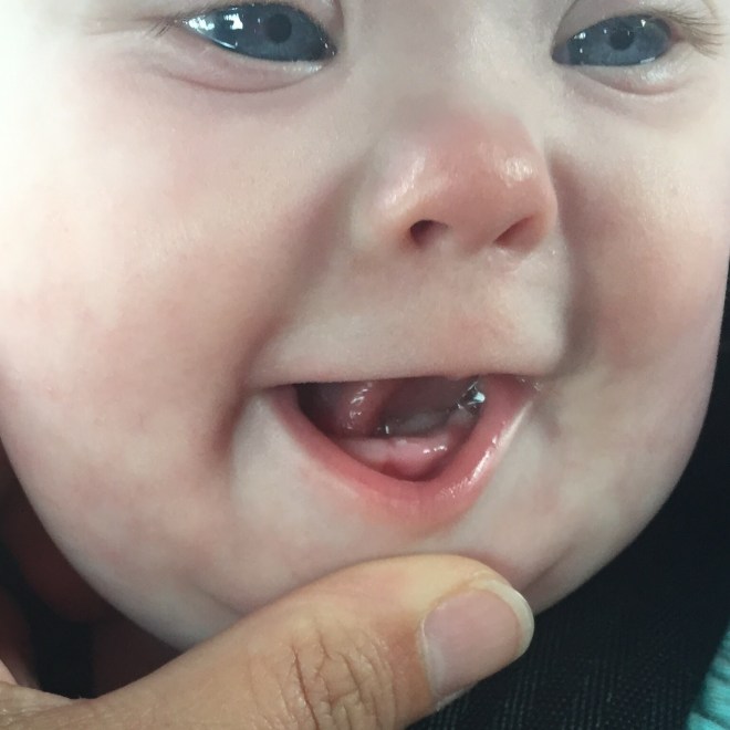 Jeremy first noticed it first when she put his fingers in her mouth. She never really was fussy over it coming in. Tough little girl!